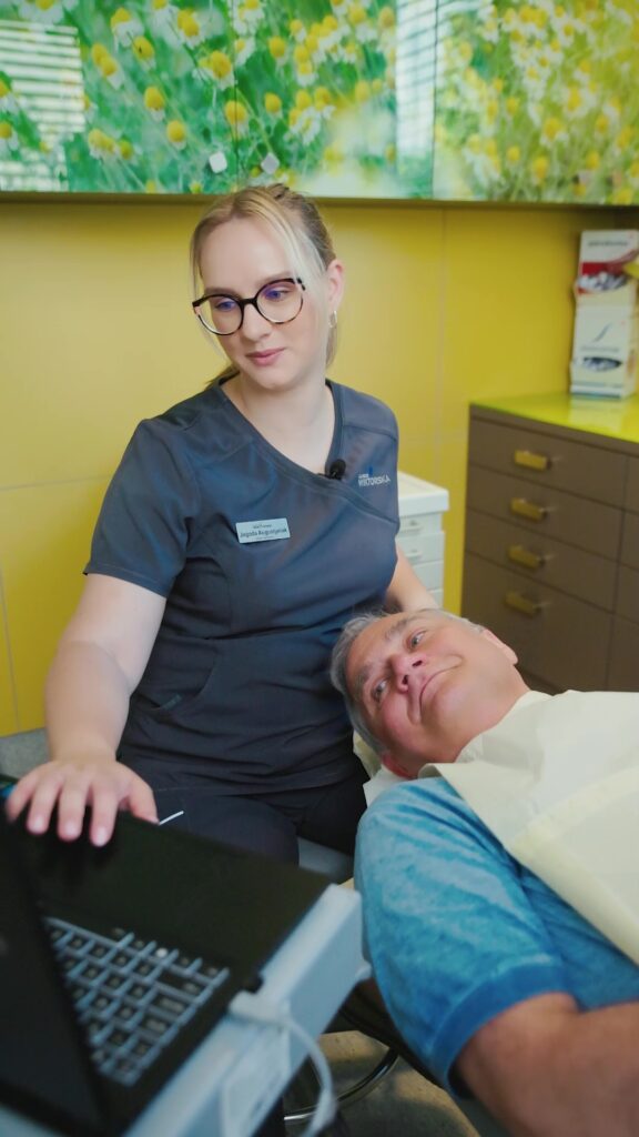 To kompleksowa analiza zdrowia jamy ustnej, która pozwala rozpocząć leczenie w sposób bezpieczny i skuteczny.
